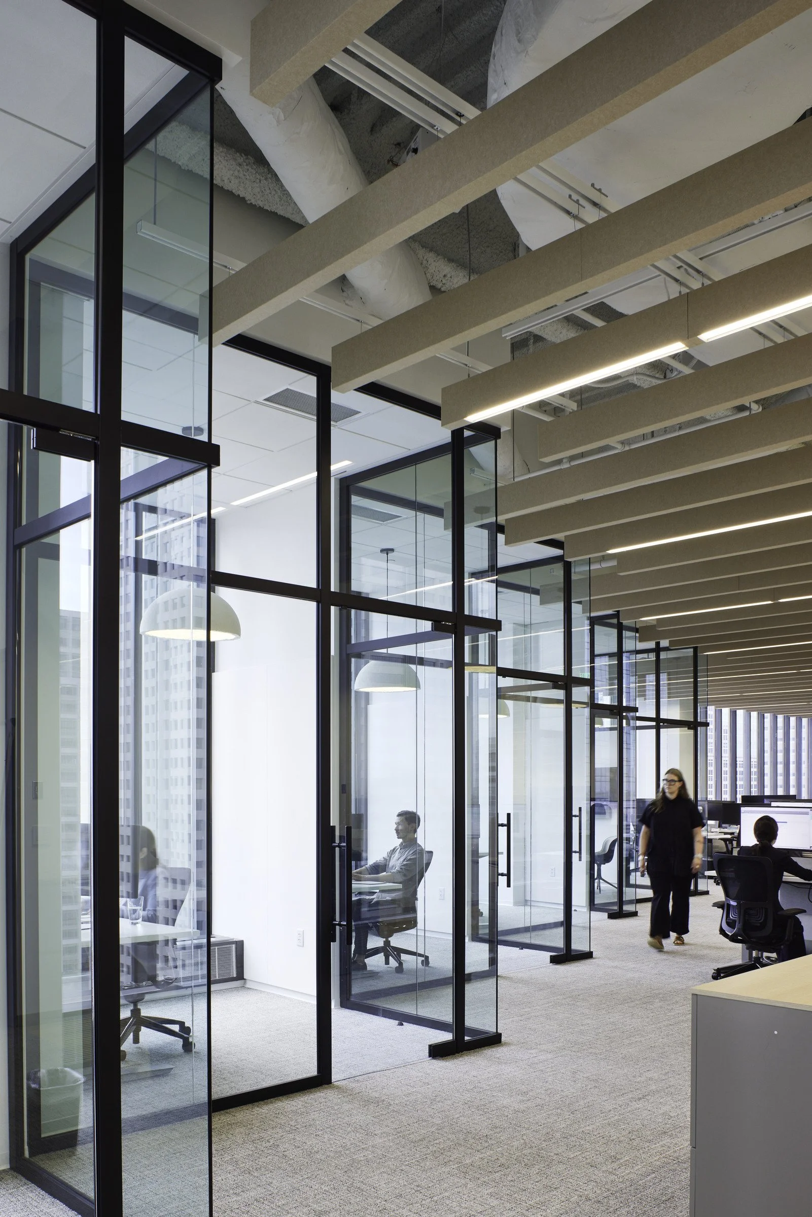 While sweeping 15’ ceilings and increased “ocean front views” provided an inspiring starting point for the design, there was a challenge in balancing all the programmatic needs in this modest suite. The highly tailored space needed to not only promote the work of the users, but be flexible as well to change for a business model that welcomes innovation.